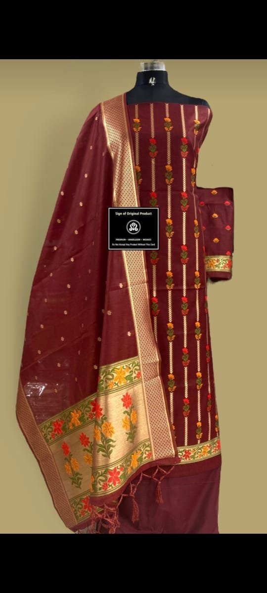 Original prewar Maroon color cotton handloom suit dupatta and salwar back plane