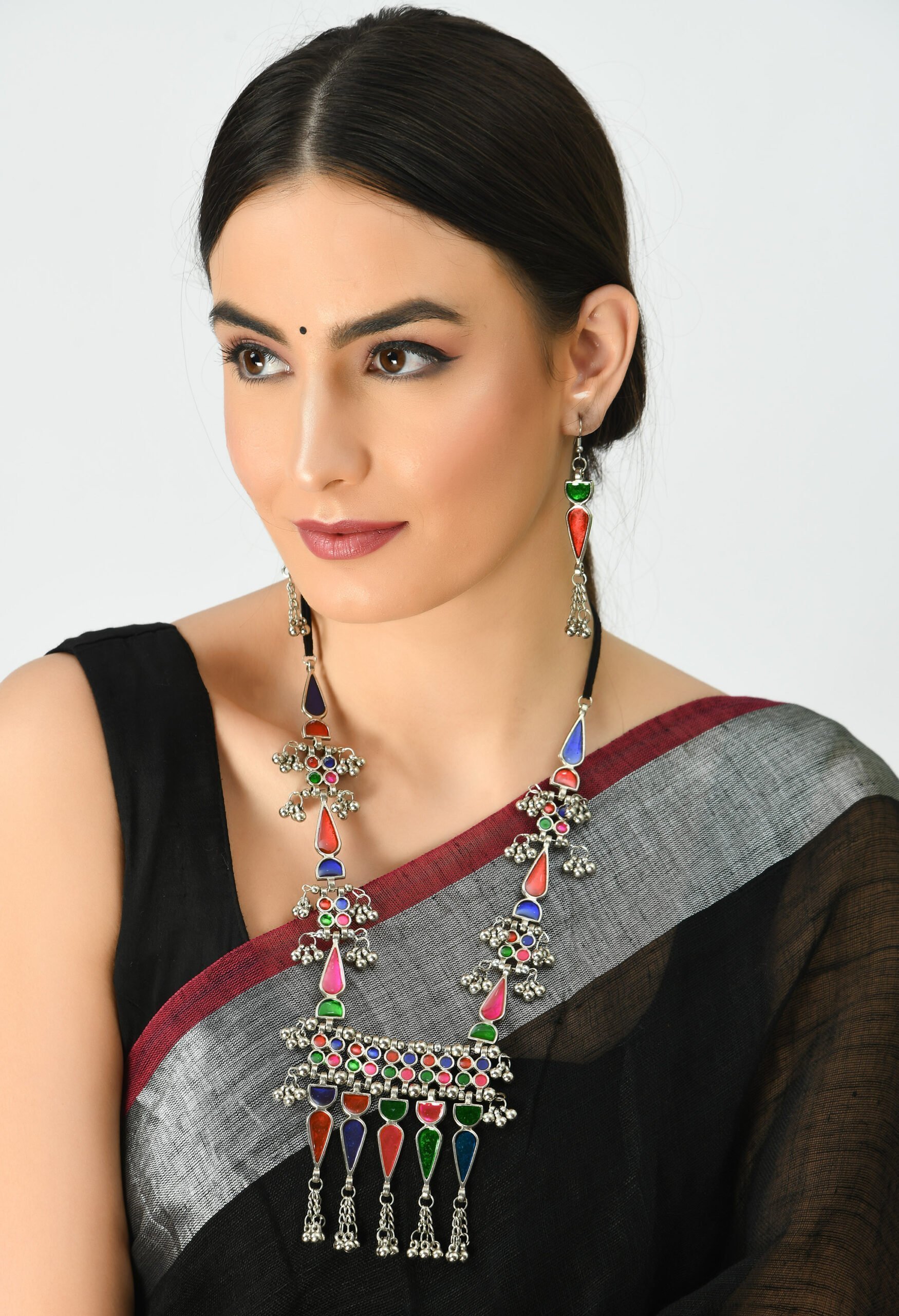 Johar Kamal Traditional Multi color Afghani Necklace with Earrings