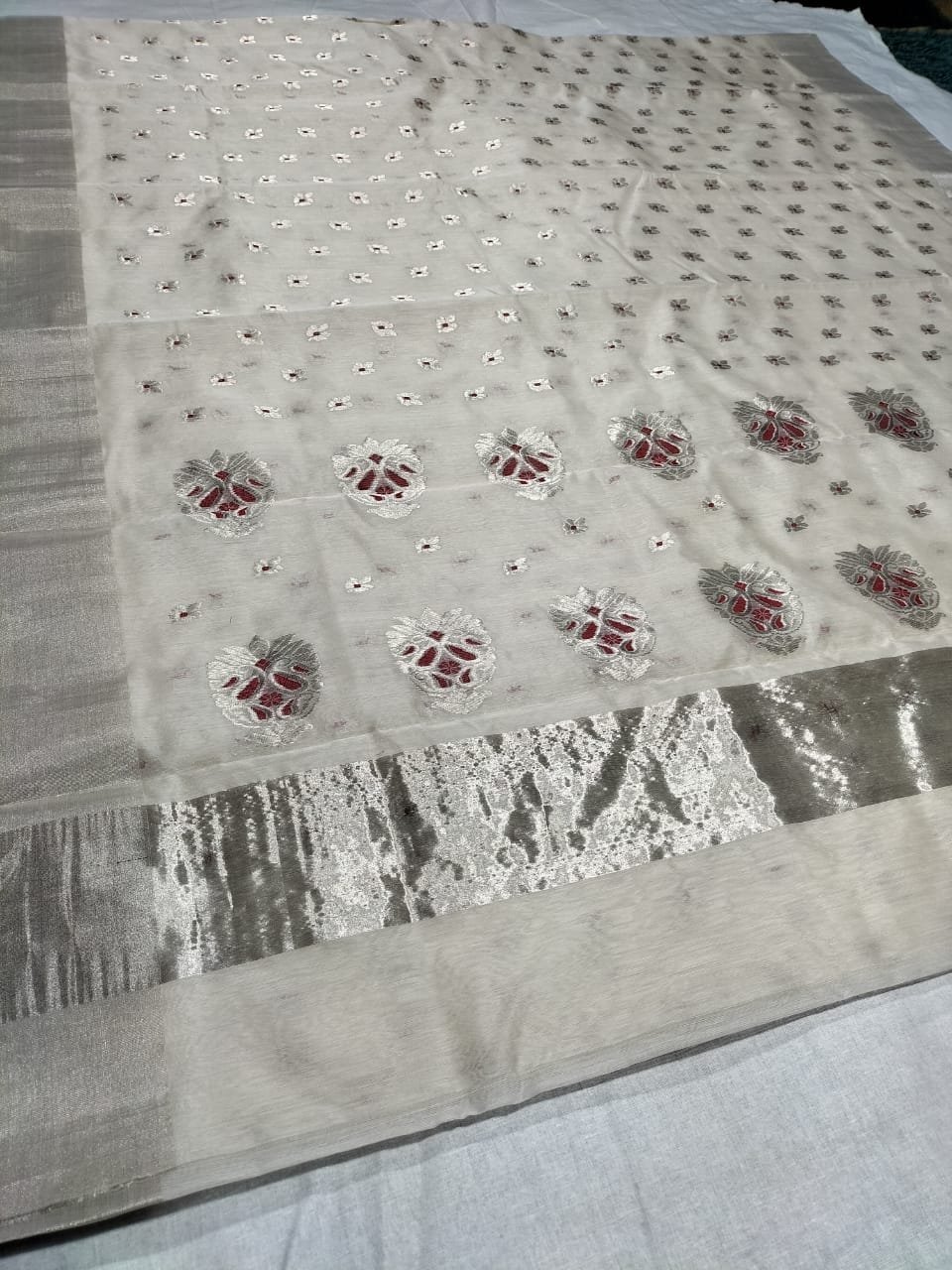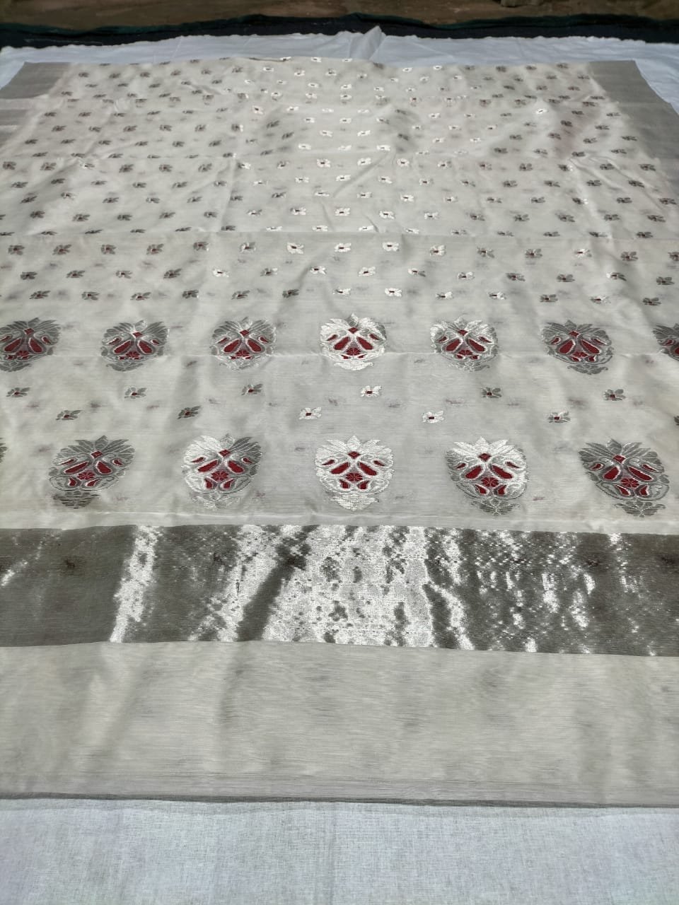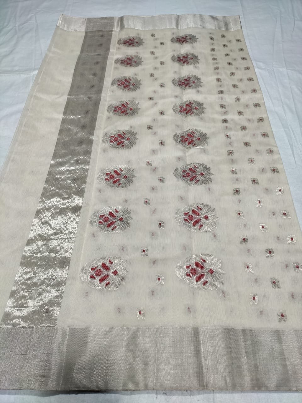 Original chanderi Handloom masrize cotton organza silk (silk by cotton ) Meena Kari buti saree with blouse.