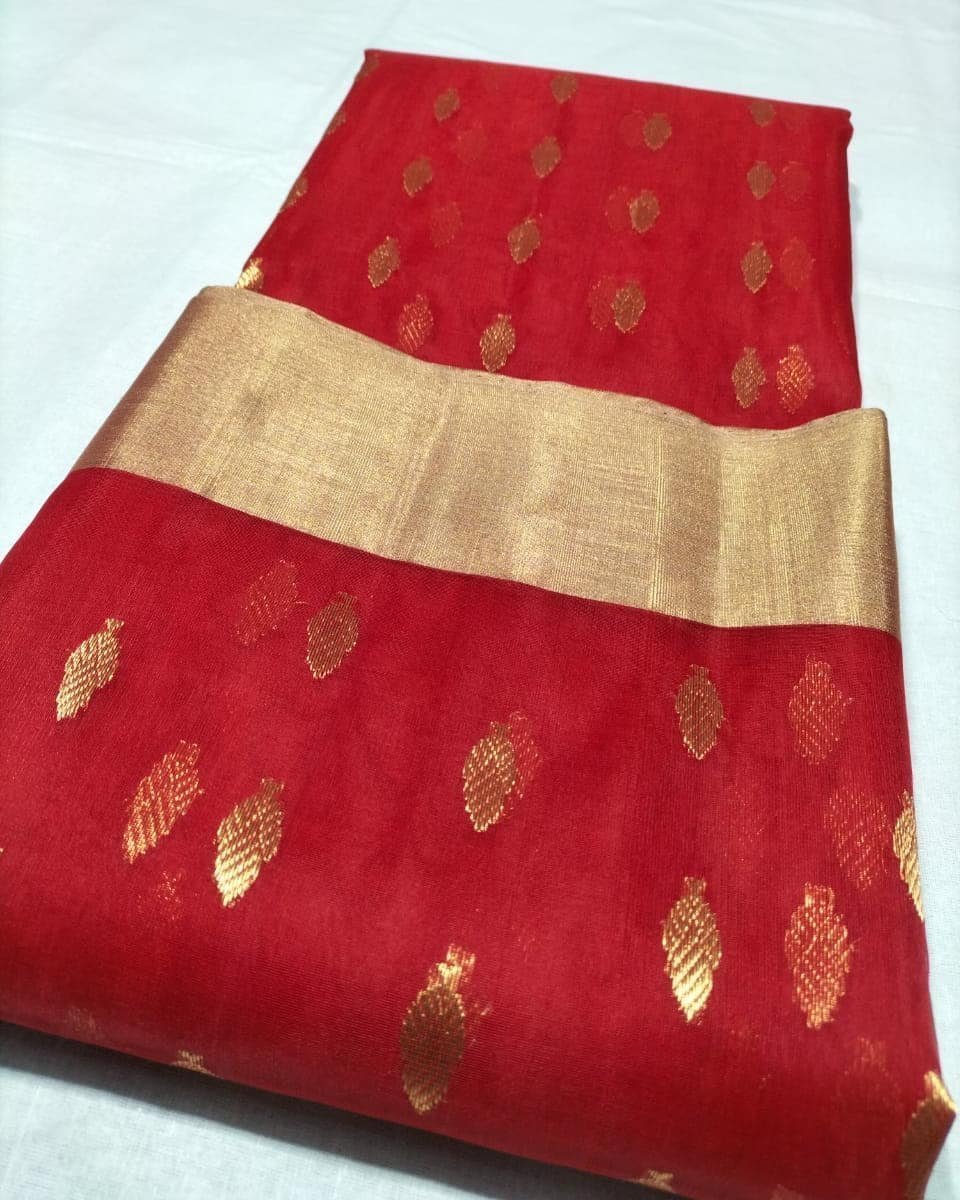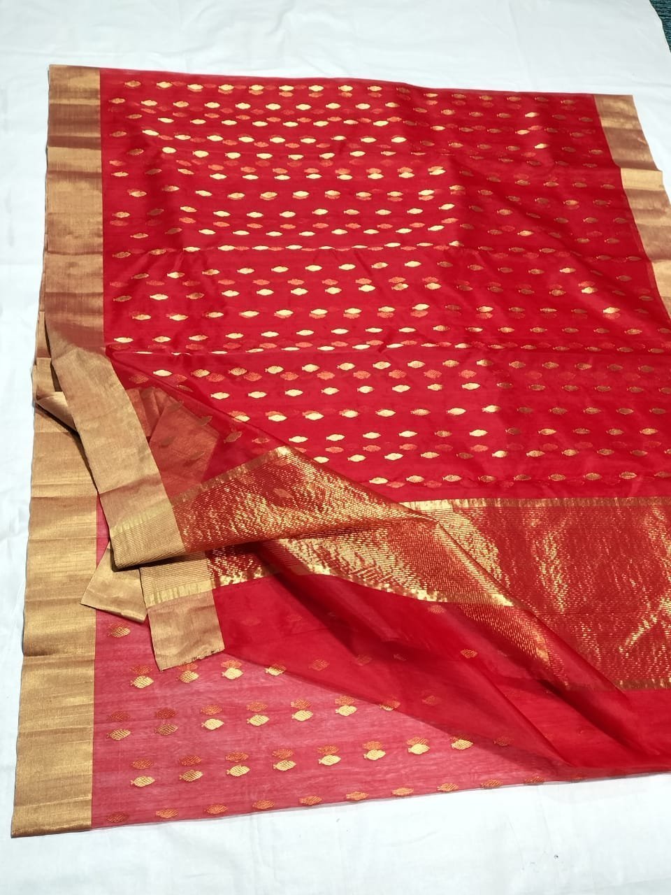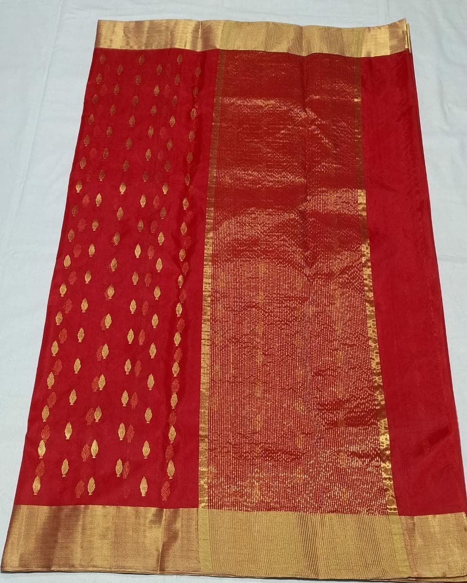 Original chanderi Handloom pure katan organza silk (silk by silk) saree with blouse.