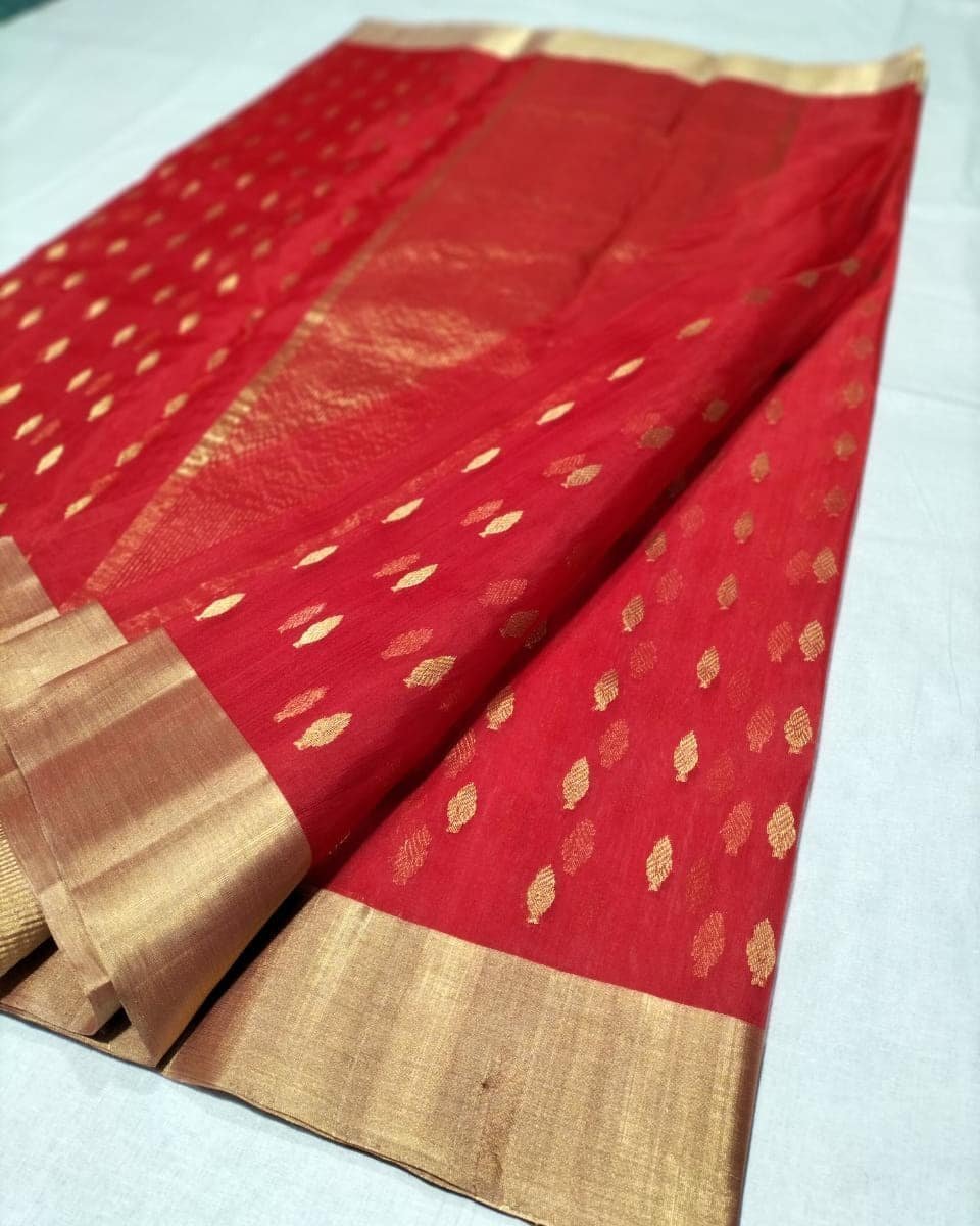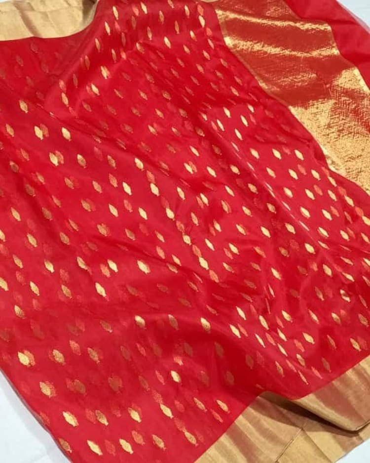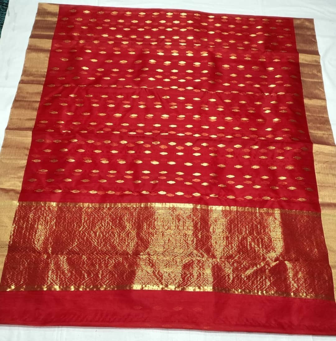 Original chanderi Handloom pure katan organza silk (silk by silk) saree with blouse.