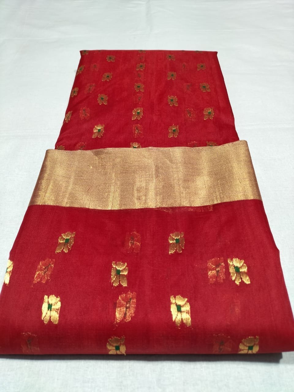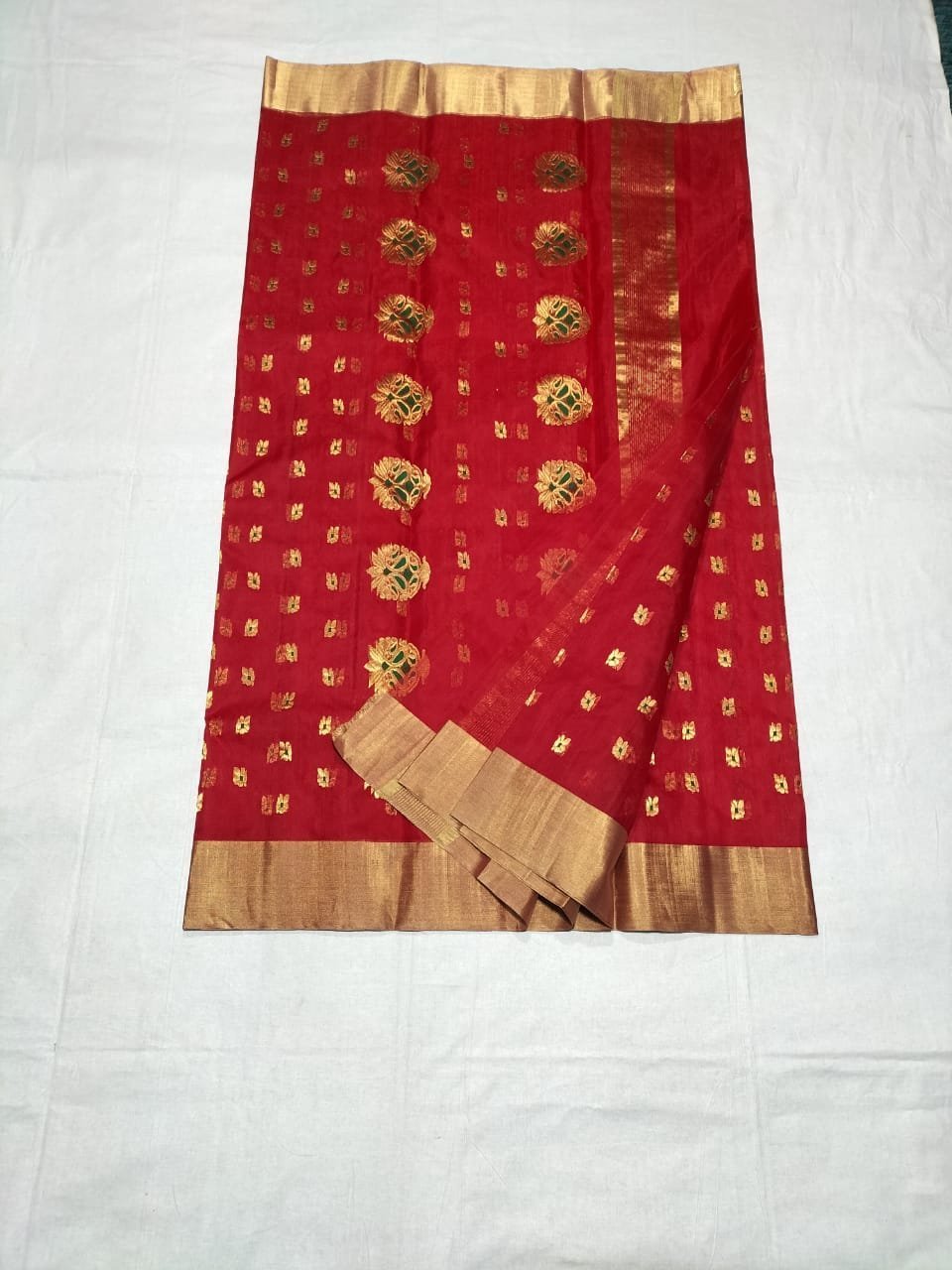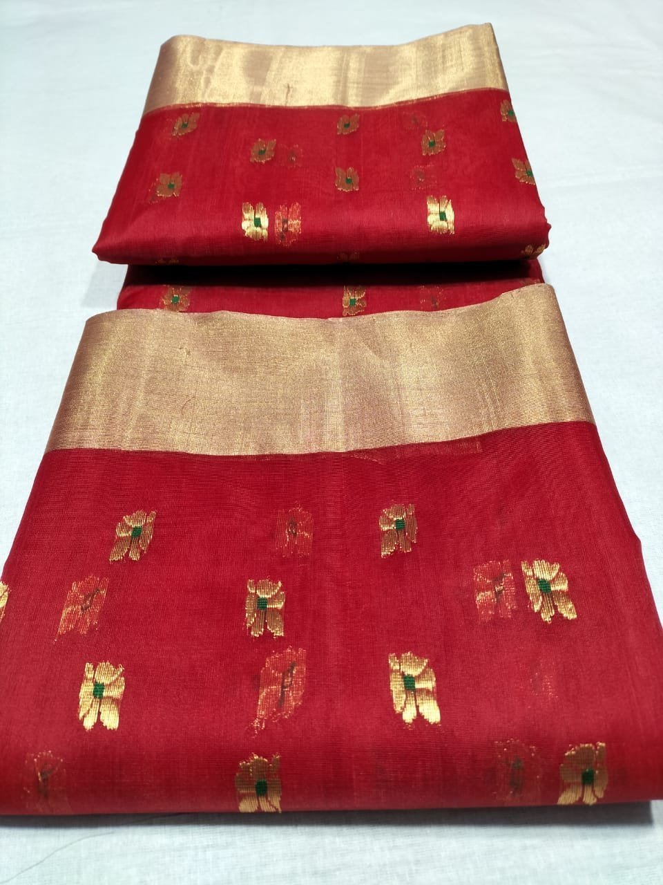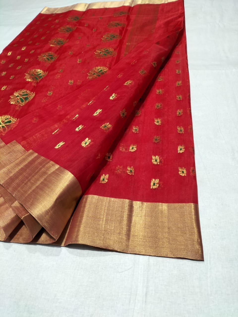 Original chanderi Handloom pure katan organza silk (silk by silk)Meena buti saree with blouse.