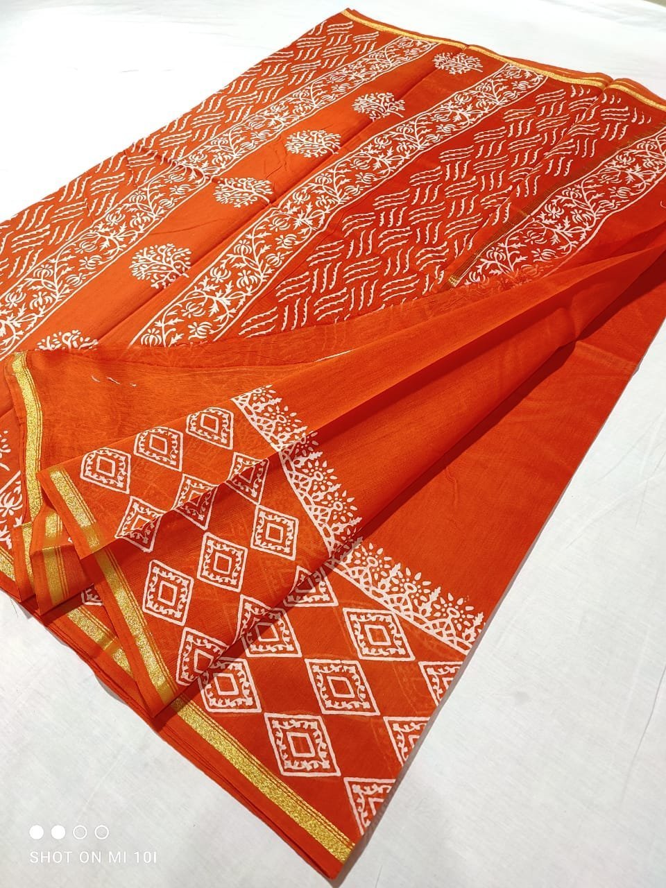 Original Handloom chanderi dabu hand block printed cotton silk saree saree with blouse