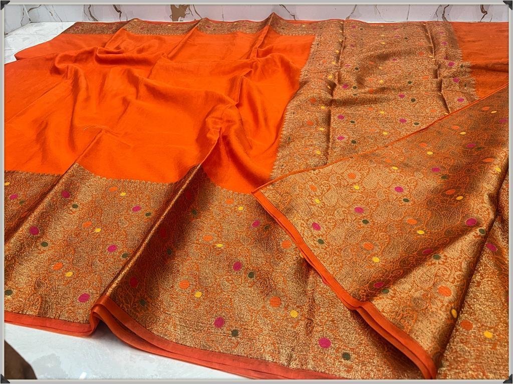 Fabric:- high quality semi chiffon soft silk saree with amzing minakari work in skirt and pallu 🥻🥻
