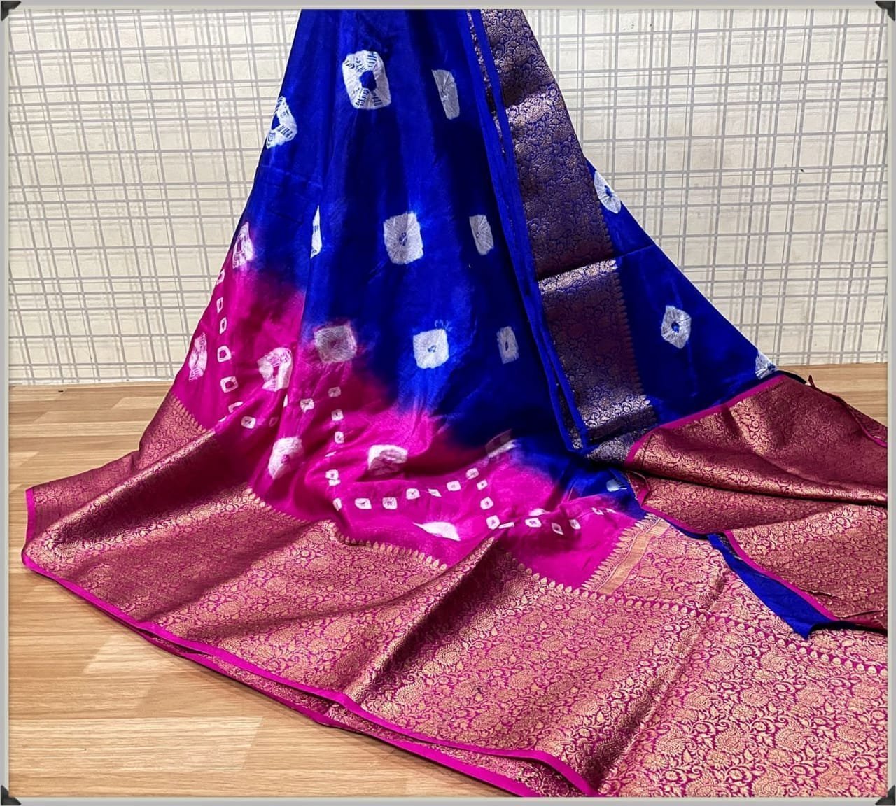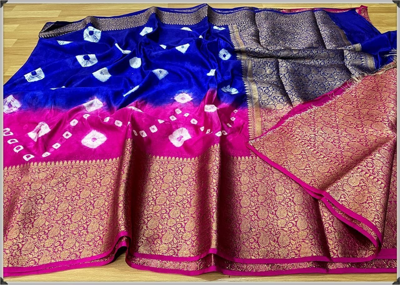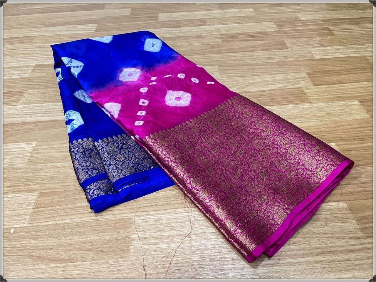 Fabric:- high quality semi chiffon soft silk saree with amazing allover bandhej dye 🥻🥻
