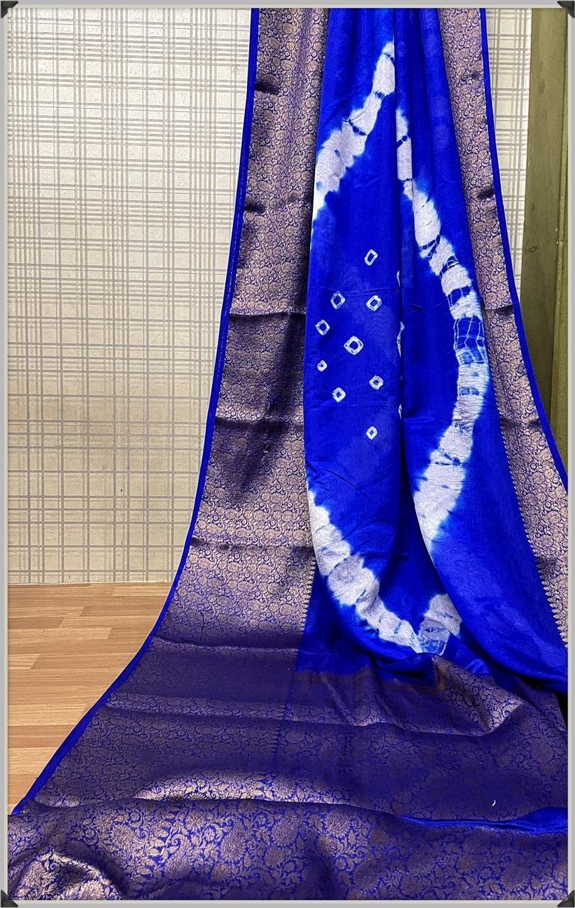 Fabric:- high quality semi chiffon soft silk saree with amzing bandhej dye 🥻🥻