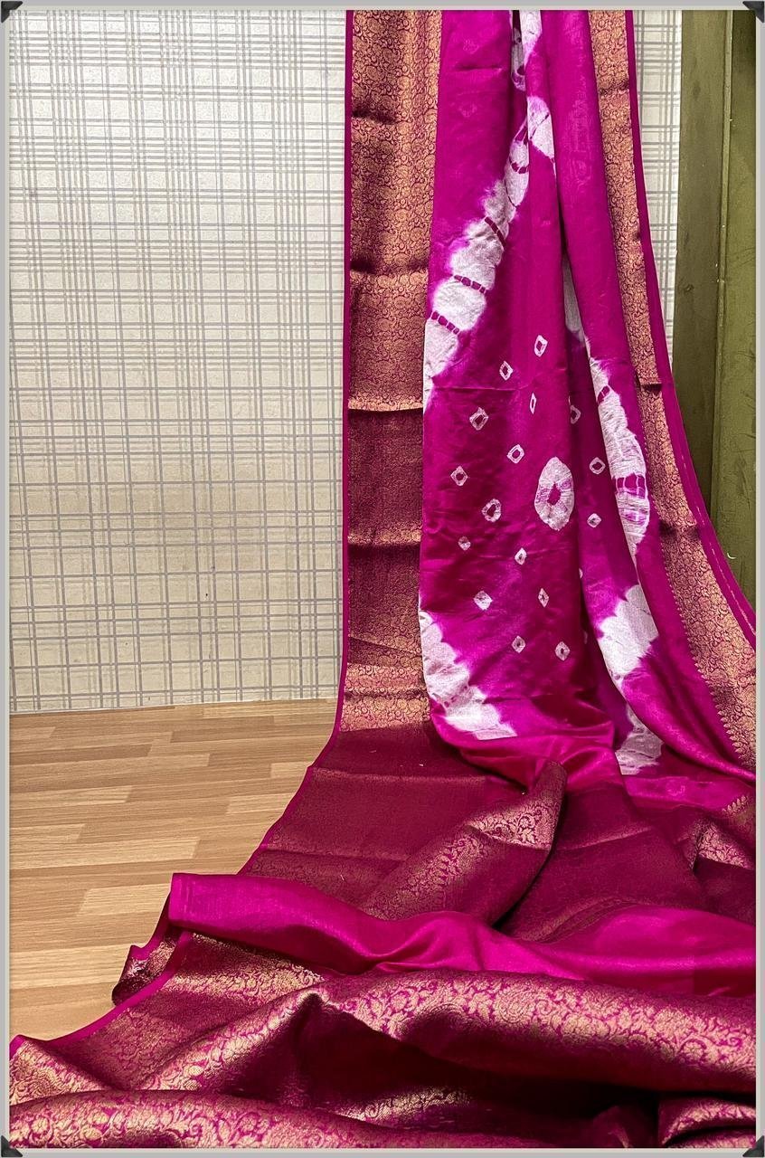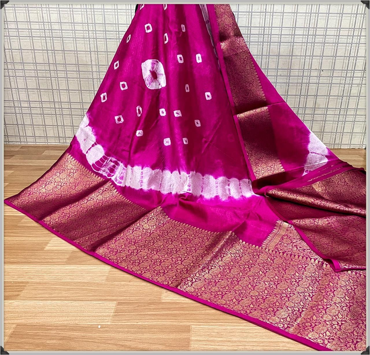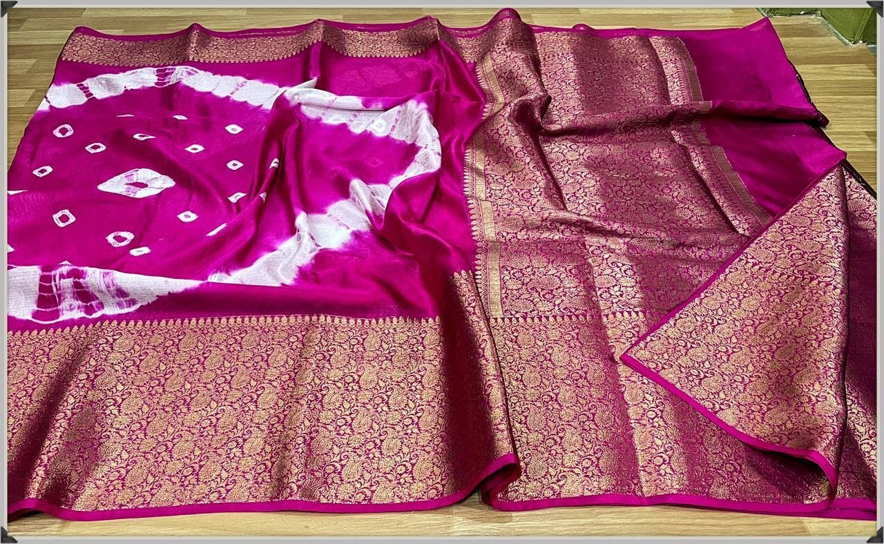 Fabric:- high quality semi chiffon soft silk saree with amzing bandhej dye 🥻🥻