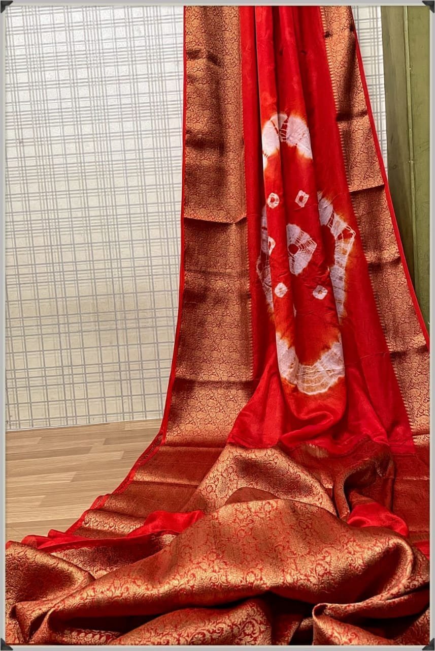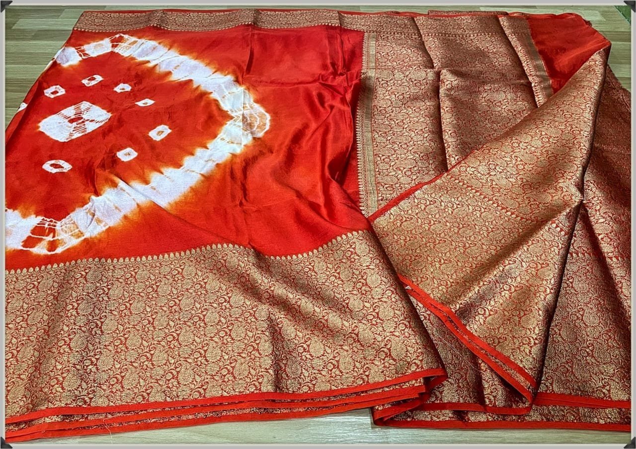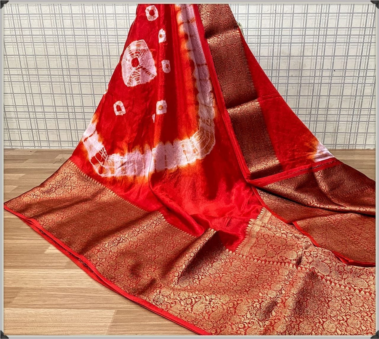 Fabric:- high quality semi chiffon soft silk saree with amzing bandhej dye 🥻🥻