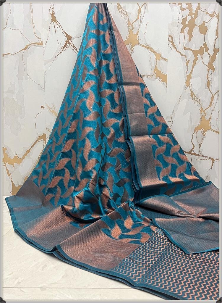 Fabric:- high quality Maheshwari cotton soft silk saree with amazing allover copper zari work 🥻🥻