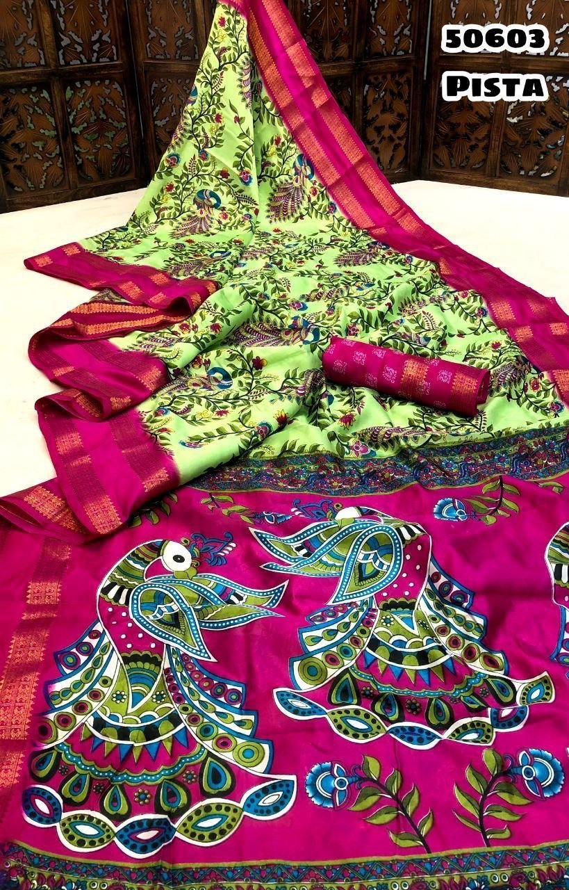 Original mulmul cotton Kalamkari printed saree with blouse.