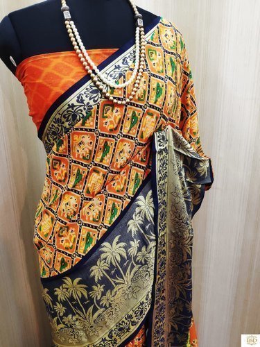 Fabrics    : Original Heavy Vichitra Fabric with Attractive Viscose Border and Mill Print Quality,