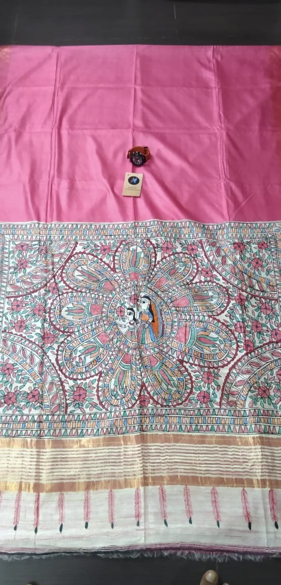 Ghicha staple zari Madhubani hand painted saree