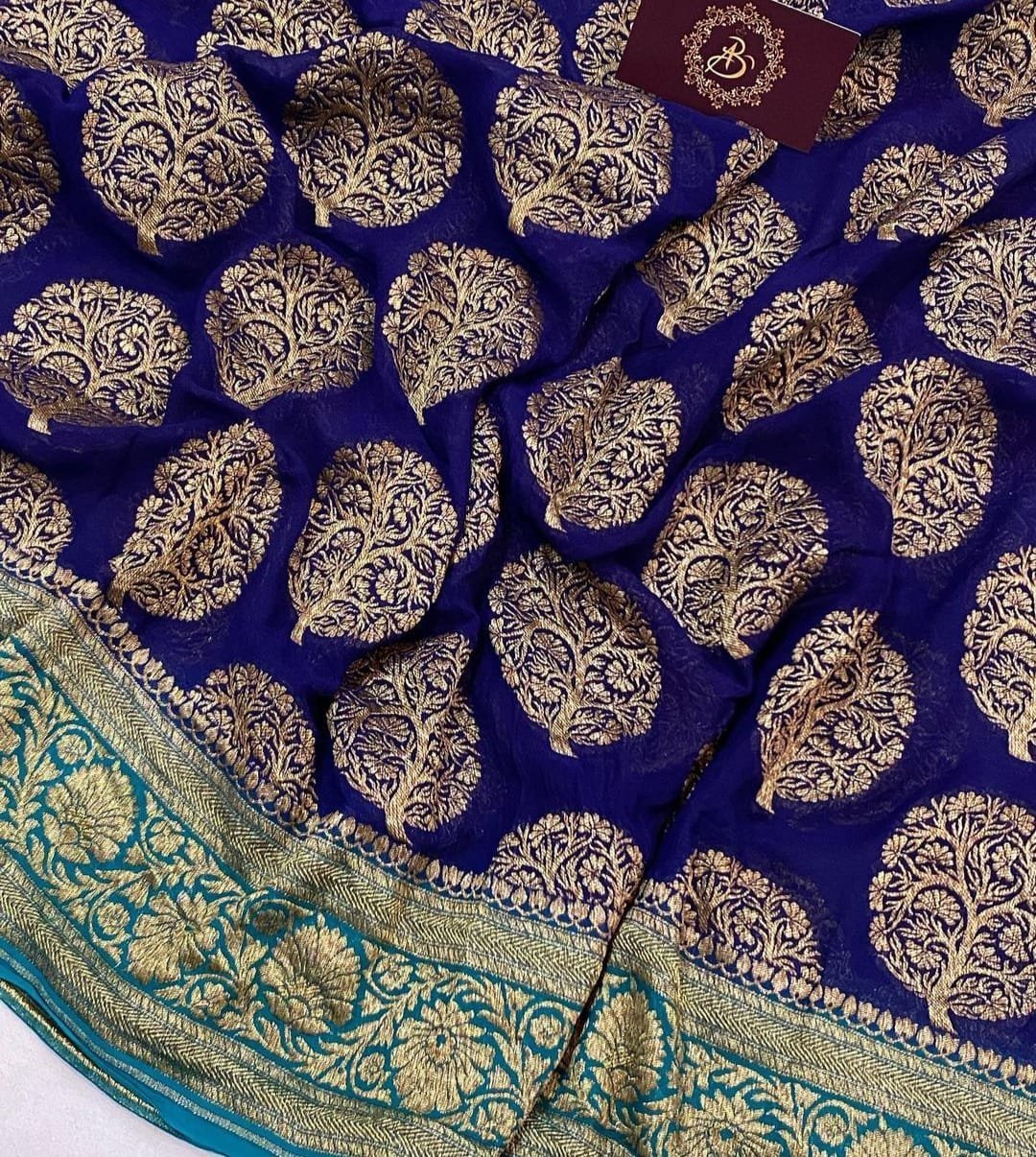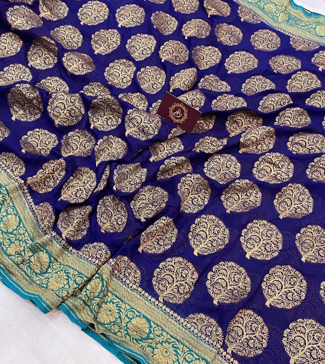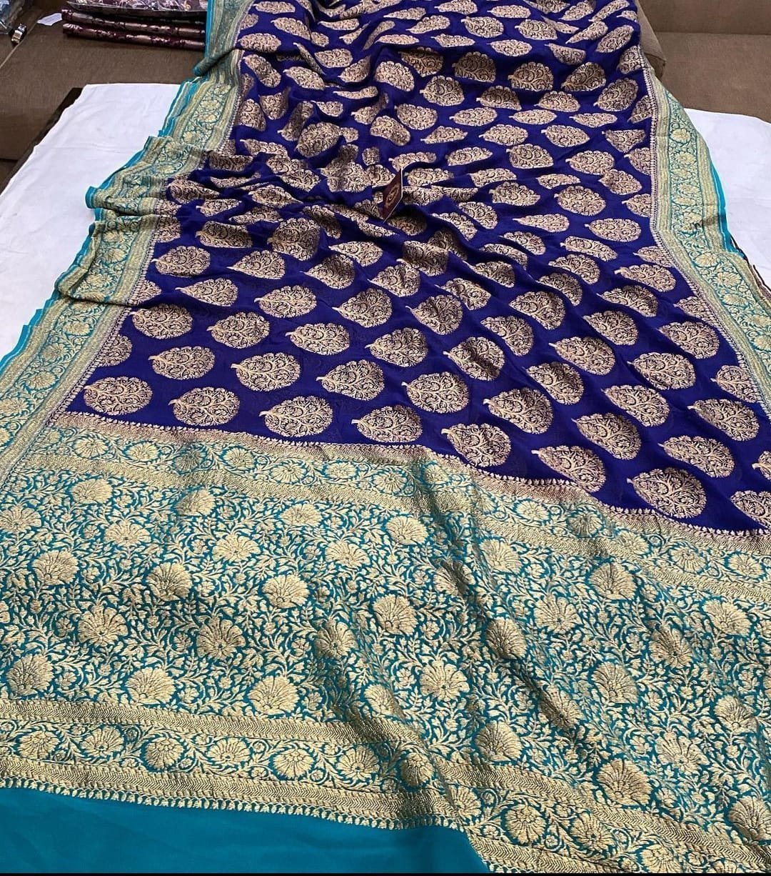 Handloom silk Original varam daibal Blue color saree with blouse.
