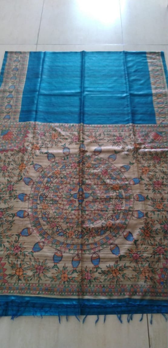 Madhubani hand painted Raw silk saree