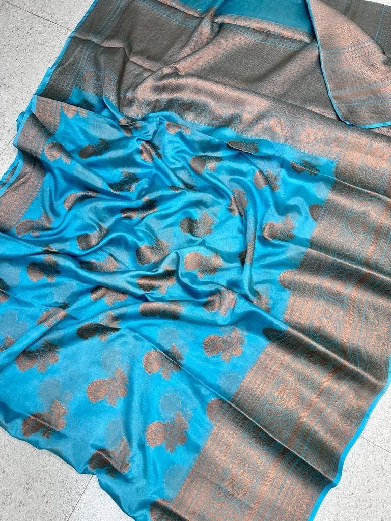 🦋Party wear silk saree dazzling high quality Sky-blue color with amzing design and latest fancy colours 🦋