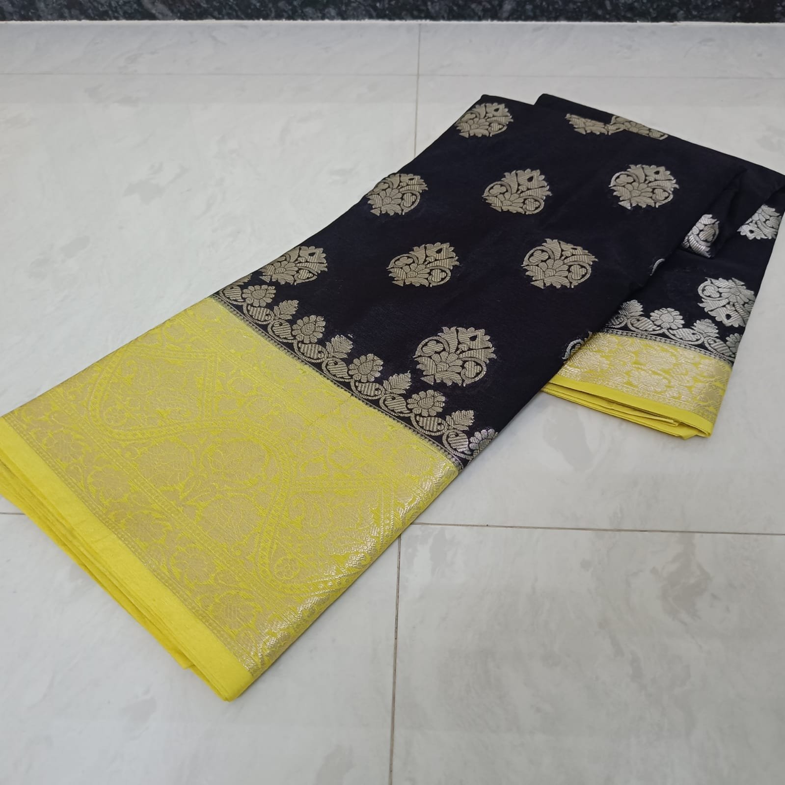 🦋 Party wear dazzling high quality semi silk  Black and Yellow color saree with amzing design and latest fancy colours 🦋