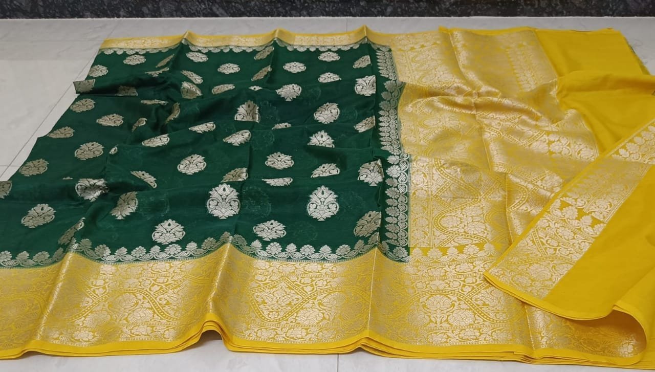 🦋 Party wear dazzling high quality semi silk Green and Yellow color saree with amzing design and latest fancy colours 🦋