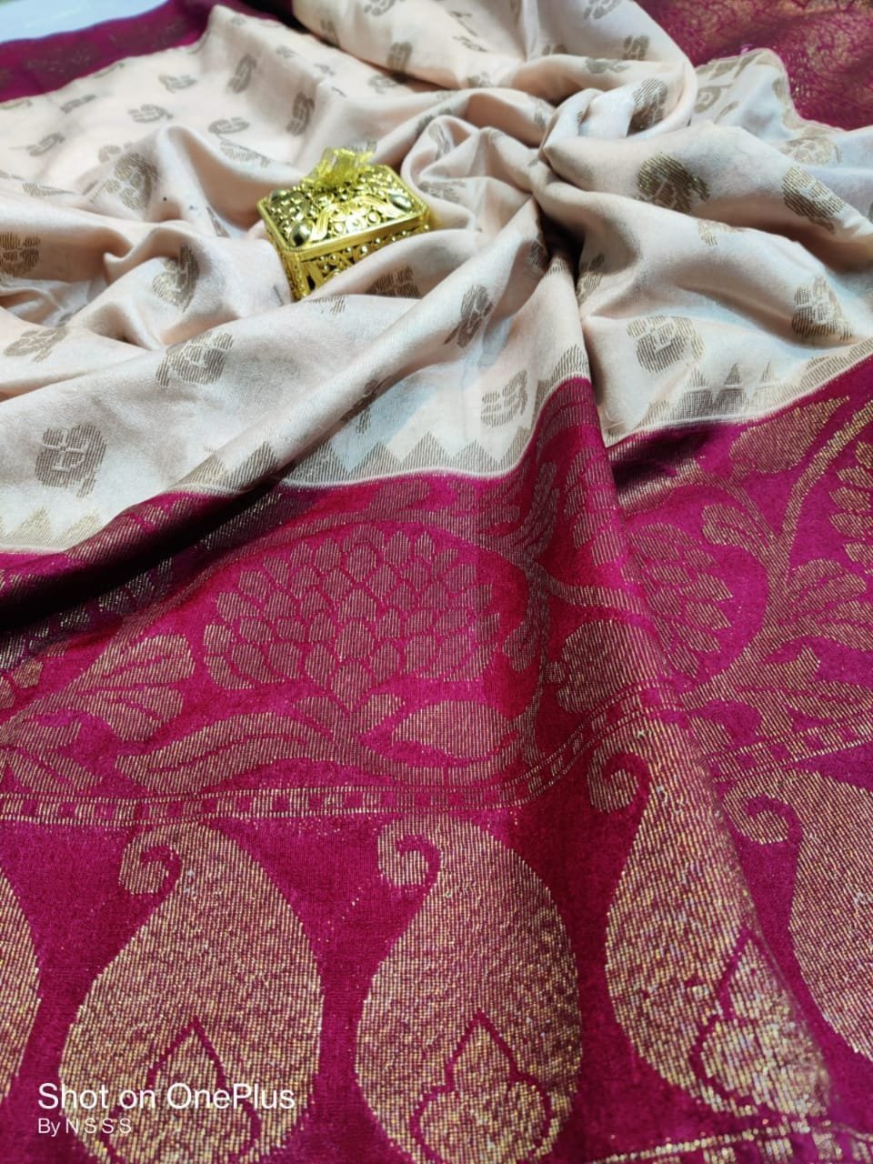 Fabric:- high quality semi dupian soft silk saree with amzing alover copper zari work 🥻🥻